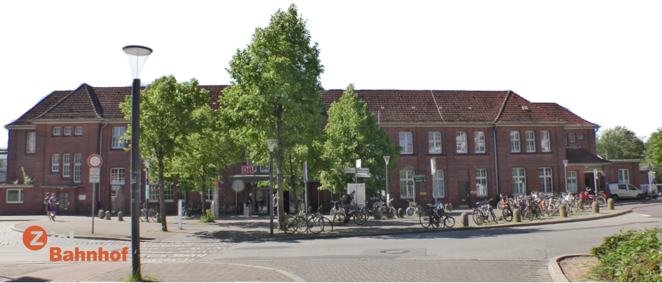 1910 wurde das heutige Stationsgebäude eröffnet und löste den älteren Vorgängerbahnhof ab. Das Stationsgebäude entstand etwas abseits des alten Bahnhofs, der noch erhalten geblieben ist. Es war ein langestrecktes hohes Backsteingebäude mit zwei hohen Stockwerken und Walmdach. Ein Mittelrisalit mit Bahnhofsuhr im Giebel sowie beidseitig jeweils ein Seitenrisalit dominierten das Gebäude zur Stadtseite hin. Die zwei Inselbahnsteige sind durch einen Personentunnel mit der Schalterhalle verbunden.Der Bahnhof besaß eine Güter- sowie eine Eilgüterabfertigung und gehörte 1938 zur RangklasseI.Weitere Streckeneröffnungen, Ausbauten oder Änderungen•1910 wurde von der Königlich Preußische Staatseisenbahnen (K. P. St. E.) ein Stellwerksgebäude errichtet.•1922 und 1934 erhielt der Bahnhof weitere Stellwerke.•Am 30. August 1990 baute die Deutsche Bundesbahn (DB) ein modernes Stellwerk, das die alten Stellwerke ersetzte.Was hat sich verändert, was ist gebliebenDas Empfangsgebäude ist weitgehend im Zustand von 1910 erhalten geblieben.